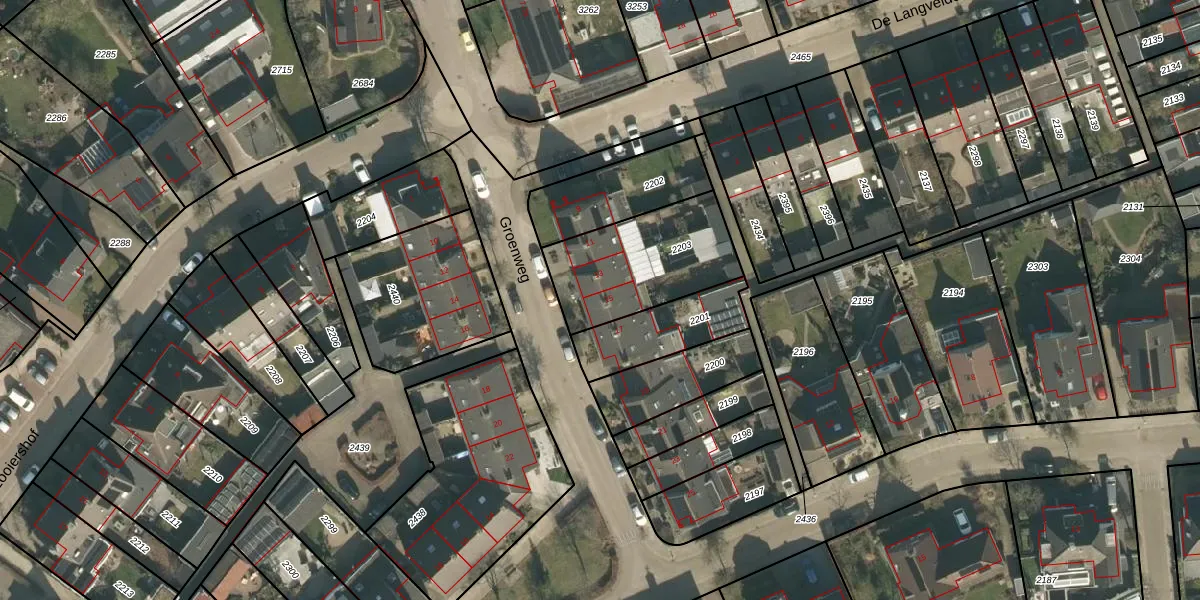 Groenweg 15 is gelegen op kadastraal perceel ESC00B2203. Deze kadastrale aanduiding is uniek en wordt gebruikt door het Kadaster om eigendomsrechten en andere zakelijke rechten vast te leggen. Het perceel maakt onderdeel uit van de kadastrale gemeente Esch.