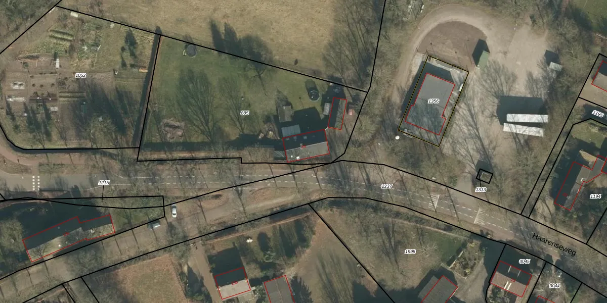 Het perceel waarop Haarenseweg 24 staat heeft een oppervlakte van 2252 m². Dit is een zeer groot perceel. De perceeloppervlakte wordt geregistreerd door het Kadaster. Gedetailleerde informatie over de maten van dit perceel kunt u vinden in het rapport Kadastrale kaart met maatvoering van Haarenseweg 24.