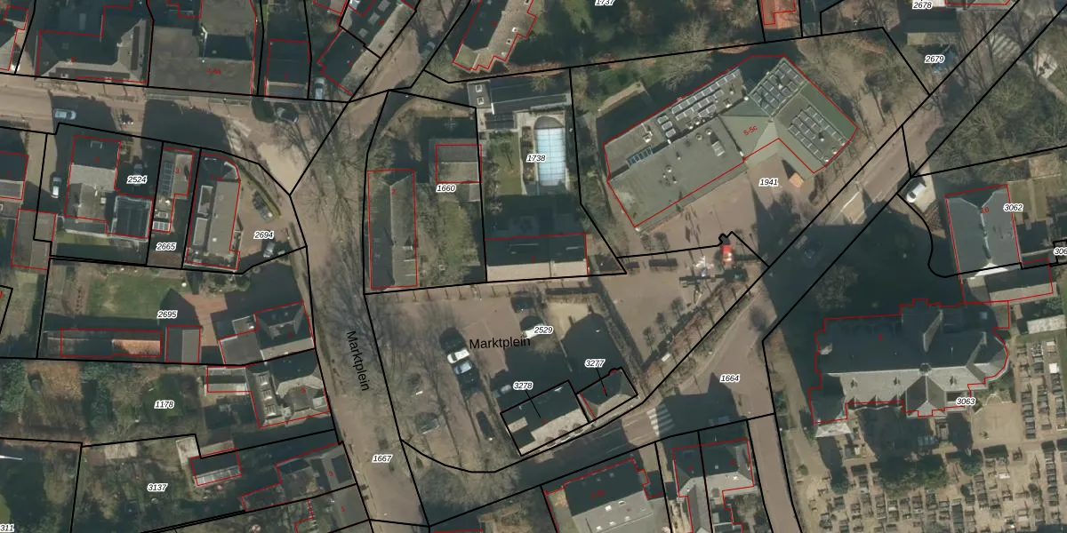 Het perceel waarop Marktplein 2 staat heeft een oppervlakte van 816 m². Dit is een groot perceel. De perceeloppervlakte wordt geregistreerd door het Kadaster. Gedetailleerde informatie over de maten van dit perceel kunt u vinden in het rapport Kadastrale kaart met maatvoering van Marktplein 2.