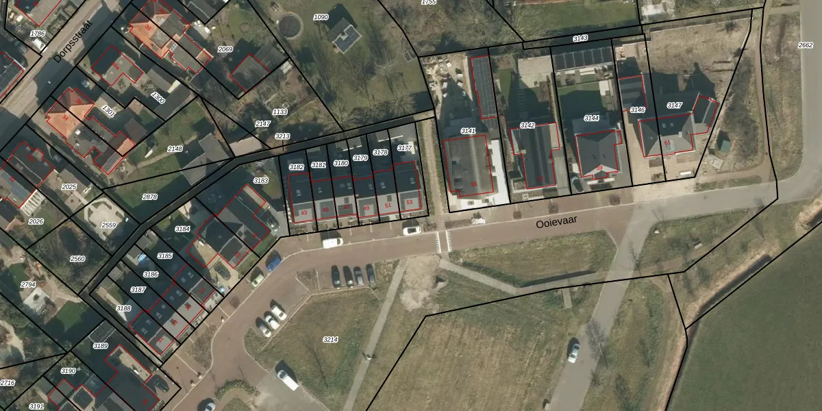Ooievaar 53 is gelegen op kadastraal perceel ESC00B3177. Deze kadastrale aanduiding is uniek en wordt gebruikt door het Kadaster om eigendomsrechten en andere zakelijke rechten vast te leggen. Het perceel maakt onderdeel uit van de kadastrale gemeente Esch.