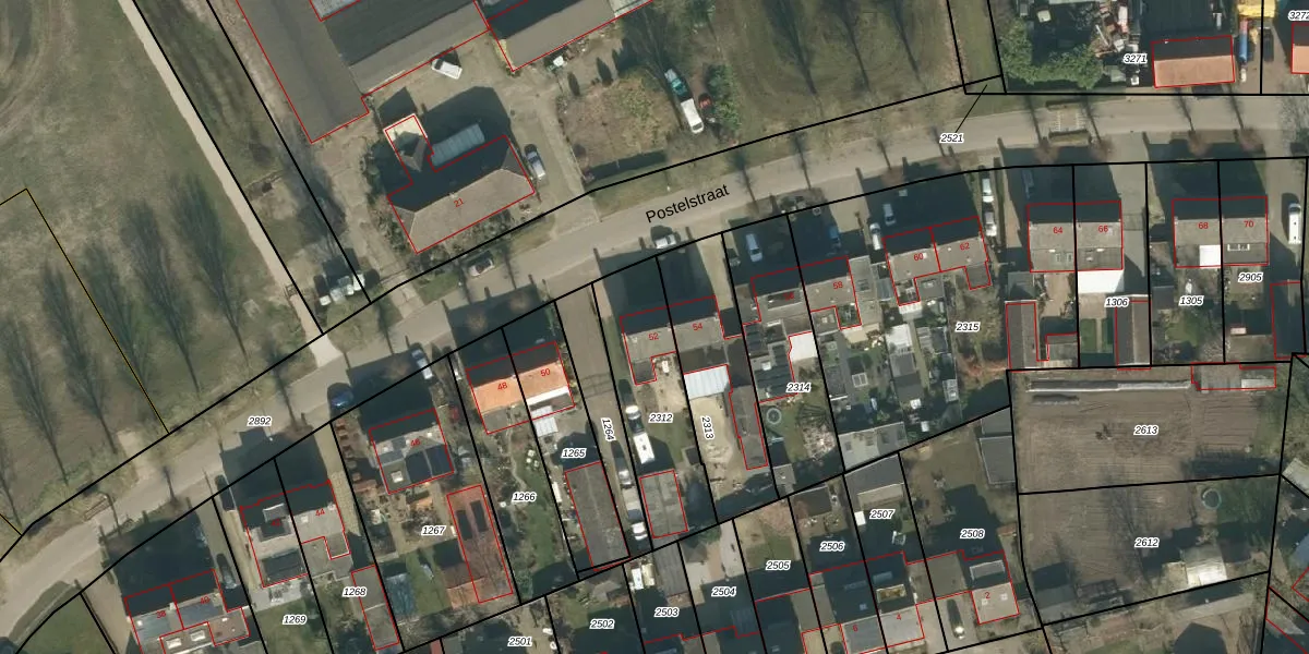 Het perceel waarop Postelstraat 52 staat heeft een oppervlakte van 450 m². Dit is een groot perceel. De perceeloppervlakte wordt geregistreerd door het Kadaster. Gedetailleerde informatie over de maten van dit perceel kunt u vinden in het rapport Kadastrale kaart met maatvoering van Postelstraat 52.