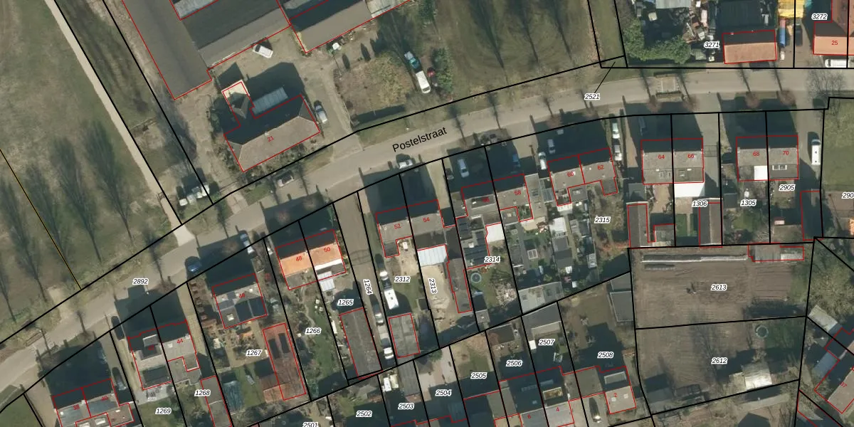 Gebruik de zoekbalk of klik op een perceel voor informatie over de adressen binnen dit perceel.