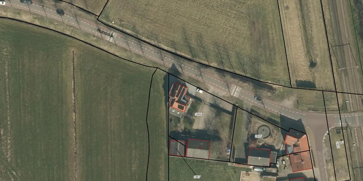 Het perceel waarop Runsdijk 14 staat heeft een oppervlakte van 1325 m². Dit is een zeer groot perceel. De perceeloppervlakte wordt geregistreerd door het Kadaster. Gedetailleerde informatie over de maten van dit perceel kunt u vinden in het rapport Kadastrale kaart met maatvoering van Runsdijk 14.