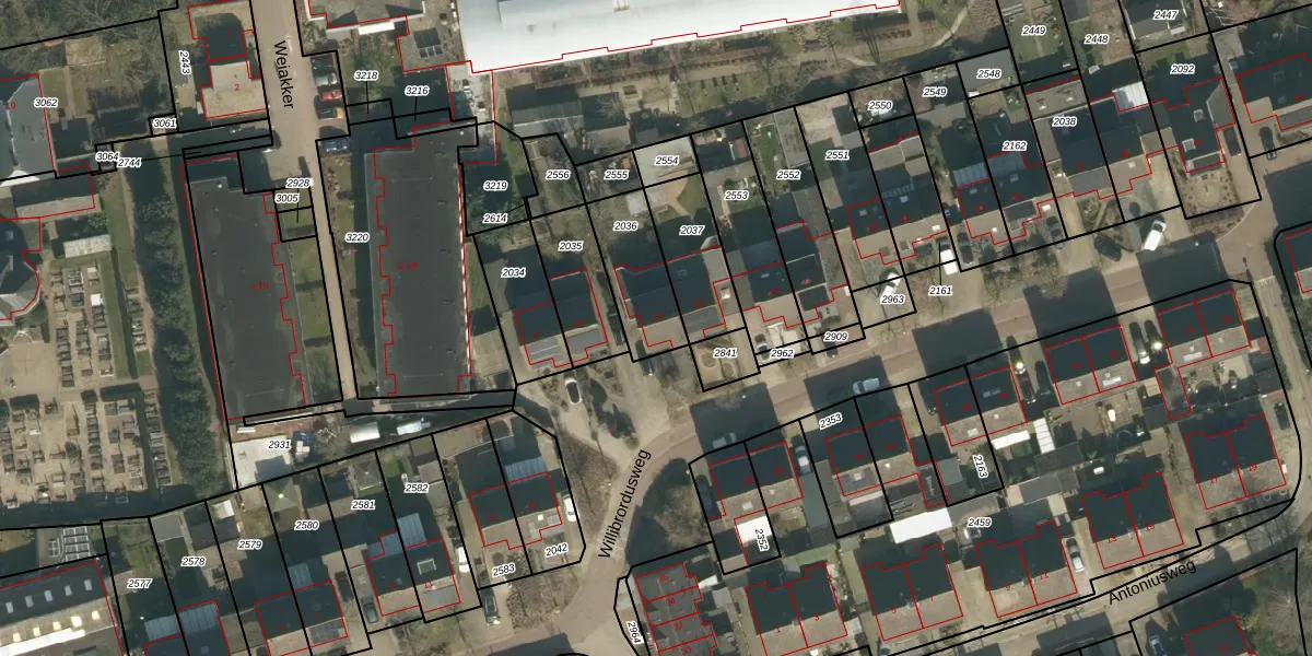 Het perceel waarop Willibrordusweg 21 staat heeft een oppervlakte van 227 m². Dit is een middelgroot perceel. De perceeloppervlakte wordt geregistreerd door het Kadaster. Gedetailleerde informatie over de maten van dit perceel kunt u vinden in het rapport Kadastrale kaart met maatvoering van Willibrordusweg 21.