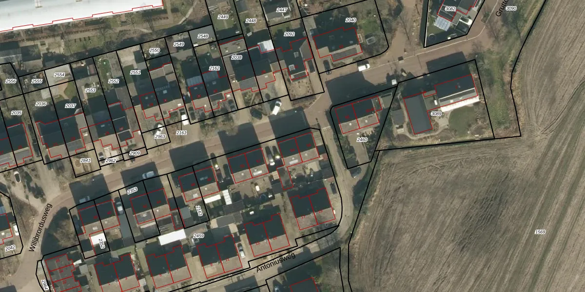 Het perceel waarop Willibrordusweg 54 staat heeft een oppervlakte van 3088 m². Dit is een zeer groot perceel. De perceeloppervlakte wordt geregistreerd door het Kadaster. Gedetailleerde informatie over de maten van dit perceel kunt u vinden in het rapport Kadastrale kaart met maatvoering van Willibrordusweg 54.