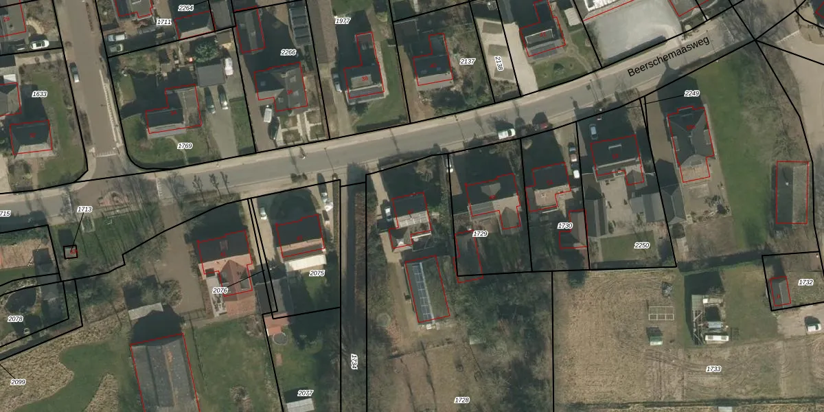 Beerschemaasweg 47 is gelegen op kadastraal perceel GVE00E1728. Deze kadastrale aanduiding is uniek en wordt gebruikt door het Kadaster om eigendomsrechten en andere zakelijke rechten vast te leggen. Het perceel maakt onderdeel uit van de kadastrale gemeente Grave.