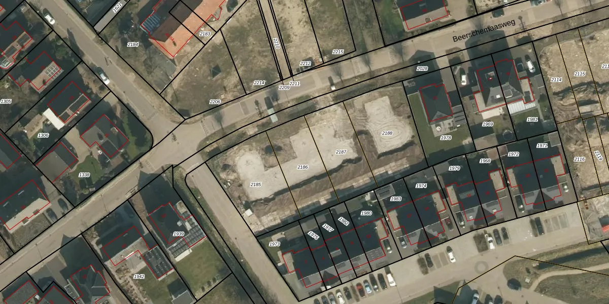 Het perceel waarop Beerschemaasweg 65 staat heeft een oppervlakte van 425 m². Dit is een groot perceel. De perceeloppervlakte wordt geregistreerd door het Kadaster. Gedetailleerde informatie over de maten van dit perceel kunt u vinden in het rapport Kadastrale kaart met maatvoering van Beerschemaasweg 65.