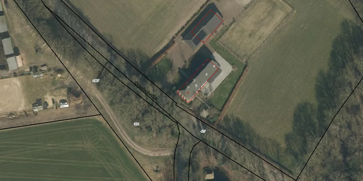 Het perceel waarop Graafschedijk 76 staat heeft een oppervlakte van 2,3 ha. Dit is een zeer groot perceel. De perceeloppervlakte wordt geregistreerd door het Kadaster. Gedetailleerde informatie over de maten van dit perceel kunt u vinden in het rapport Kadastrale kaart met maatvoering van Graafschedijk 76.