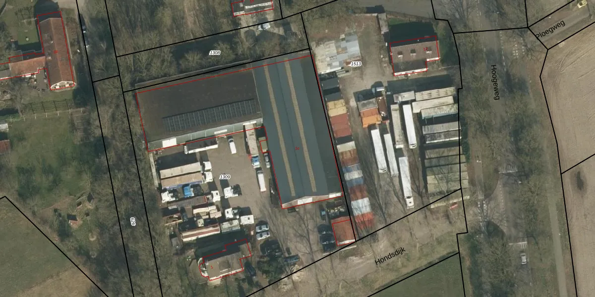 Het perceel waarop Hondsdijk 1-c staat heeft een oppervlakte van 5185 m². Dit is een zeer groot perceel. De perceeloppervlakte wordt geregistreerd door het Kadaster. Gedetailleerde informatie over de maten van dit perceel kunt u vinden in het rapport Kadastrale kaart met maatvoering van Hondsdijk 1-c.