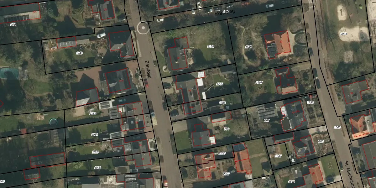 Het perceel waarop Zanddijk 30 staat heeft een oppervlakte van 615 m². Dit is een groot perceel. De perceeloppervlakte wordt geregistreerd door het Kadaster. Gedetailleerde informatie over de maten van dit perceel kunt u vinden in het rapport Kadastrale kaart met maatvoering van Zanddijk 30.
