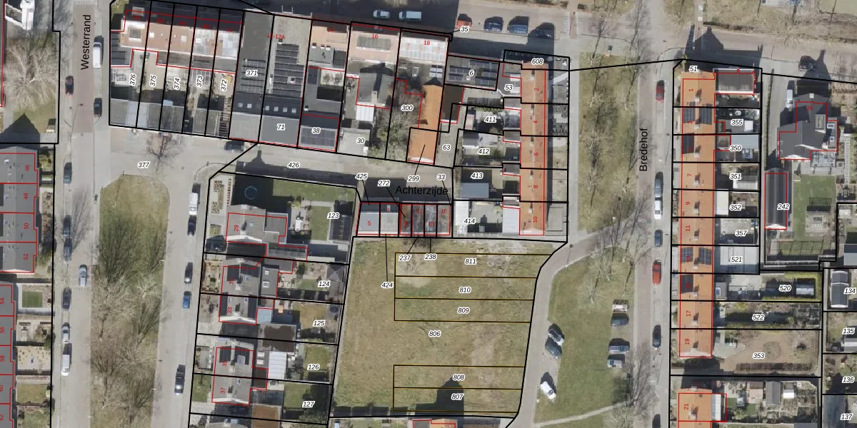 Gebruik de zoekbalk of klik op een perceel voor informatie over de adressen binnen dit perceel.