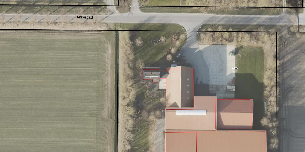 Het perceel waarop Ankerpad 5 staat heeft een oppervlakte van 1,1 ha. Dit is een zeer groot perceel. De perceeloppervlakte wordt geregistreerd door het Kadaster. Gedetailleerde informatie over de maten van dit perceel kunt u vinden in het rapport Kadastrale kaart met maatvoering van Ankerpad 5.
