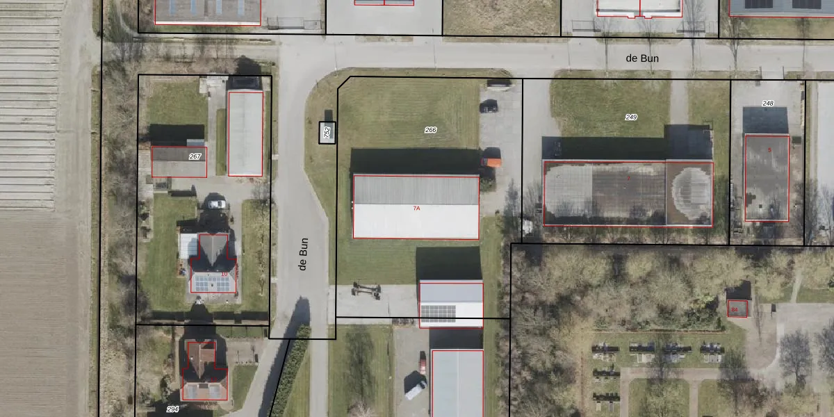 de Bun 7-A is gelegen op kadastraal perceel NOP00EZ266. Deze kadastrale aanduiding is uniek en wordt gebruikt door het Kadaster om eigendomsrechten en andere zakelijke rechten vast te leggen. Het perceel maakt onderdeel uit van de kadastrale gemeente Noordoostpolder.