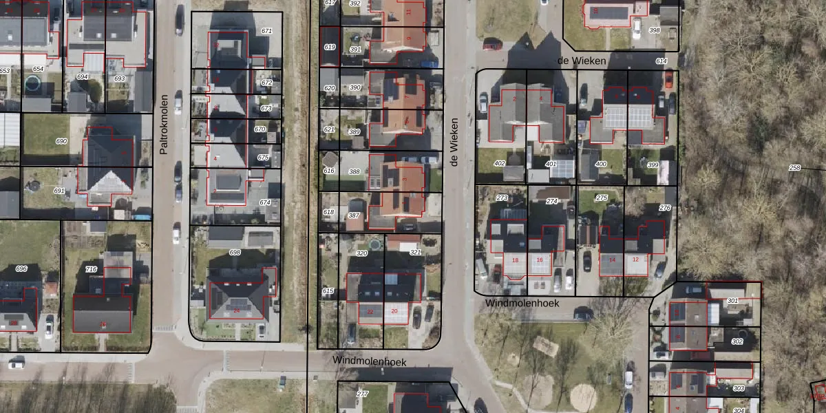 Het perceel waarop de Wieken 1 staat heeft een oppervlakte van 251 m². Dit is een middelgroot perceel. De perceeloppervlakte wordt geregistreerd door het Kadaster. Gedetailleerde informatie over de maten van dit perceel kunt u vinden in het rapport Kadastrale kaart met maatvoering van de Wieken 1.