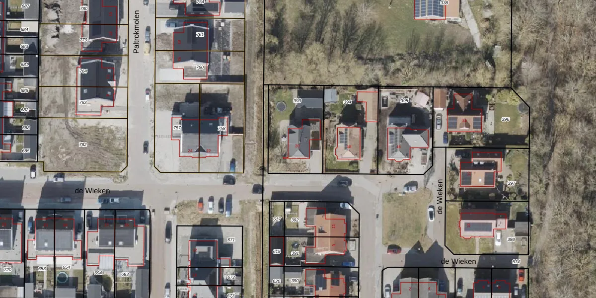 Het perceel waarop de Wieken 20 staat heeft een oppervlakte van 547 m². Dit is een groot perceel. De perceeloppervlakte wordt geregistreerd door het Kadaster. Gedetailleerde informatie over de maten van dit perceel kunt u vinden in het rapport Kadastrale kaart met maatvoering van de Wieken 20.