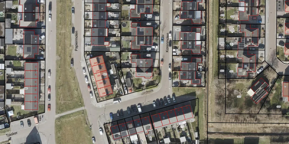 Het perceel waarop Korenmolen 18 staat heeft een oppervlakte van 373 m². Dit is een groot perceel. De perceeloppervlakte wordt geregistreerd door het Kadaster. Gedetailleerde informatie over de maten van dit perceel kunt u vinden in het rapport Kadastrale kaart met maatvoering van Korenmolen 18.