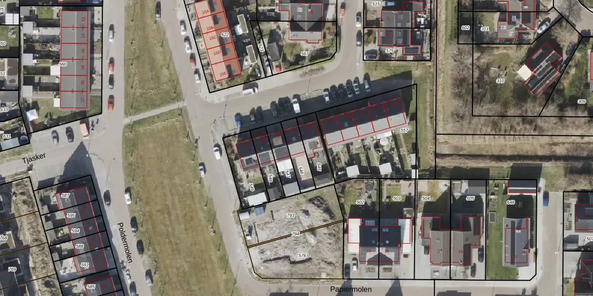 Het adres ligt op het perceel NOP00-EZ-546, dat zich in de kadastrale gemeente Noordoostpolder bevindt. Het perceel is 135 m² groot. Dat is kleiner dan de gemiddelde perceeloppervlakte in Noordoostpolder, dat op 2,1 ha ligt. De grootste perceeloppervlakte in de kadastrale gemeente is 47,42 km². De kleinste oppervlakte bedraagt 0 m². Dit is het enige adres dat aanwezig is op het perceel. De laatste wijziging in het de Basisregistratie Kadaster (BRK) was op 08-07-2016.