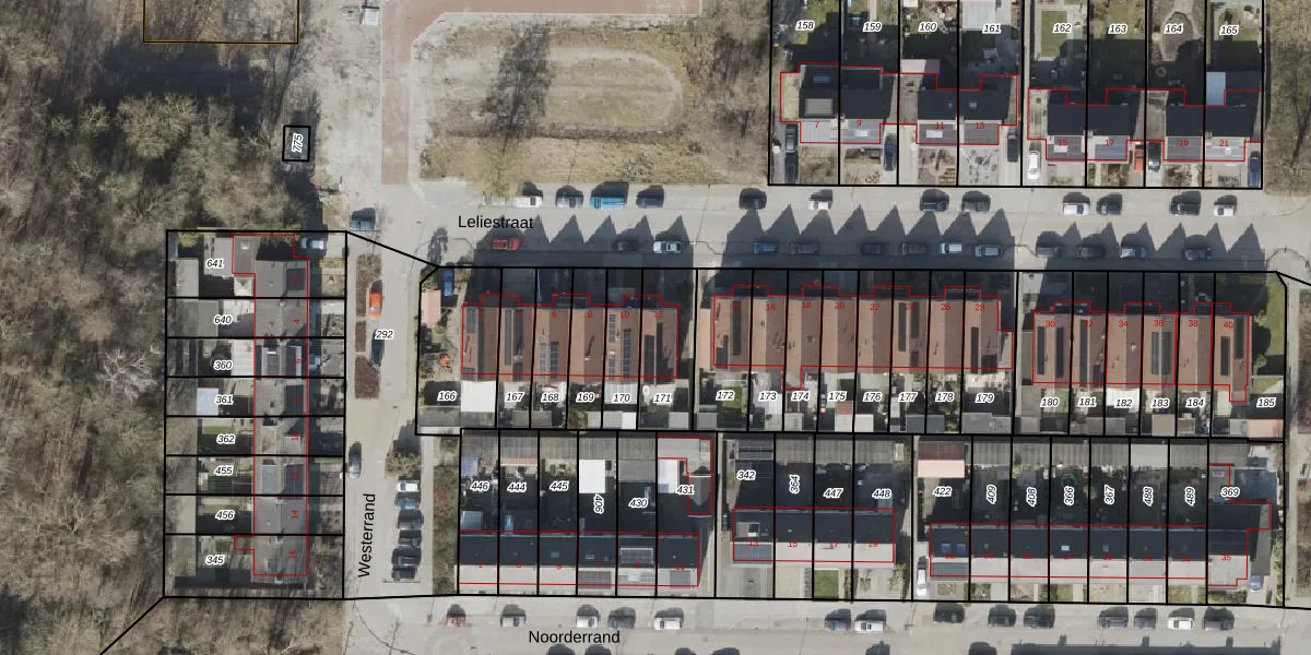 Gebruik de zoekbalk of klik op een perceel voor informatie over de adressen binnen dit perceel.