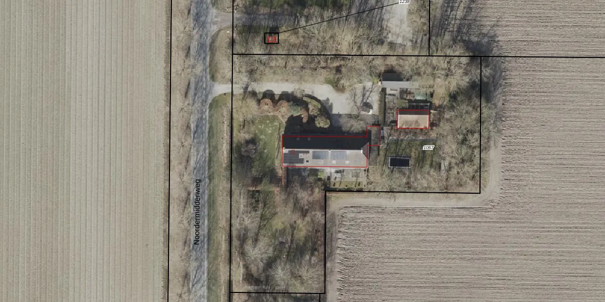 Het perceel waarop Noordermiddenweg 2-1 staat heeft een oppervlakte van 4765 m². Dit is een zeer groot perceel. De perceeloppervlakte wordt geregistreerd door het Kadaster. Gedetailleerde informatie over de maten van dit perceel kunt u vinden in het rapport Kadastrale kaart met maatvoering van Noordermiddenweg 2-1.