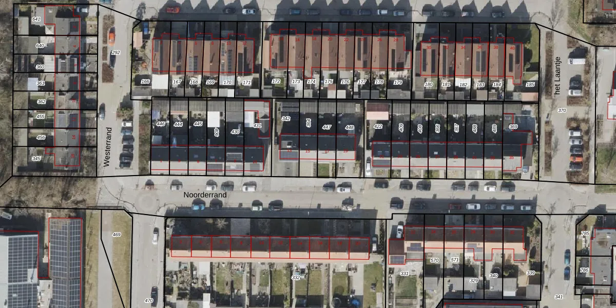 Het perceel waarop Noorderrand 15 staat heeft een oppervlakte van 153 m². Dit is een middelgroot perceel. De perceeloppervlakte wordt geregistreerd door het Kadaster. Gedetailleerde informatie over de maten van dit perceel kunt u vinden in het rapport Kadastrale kaart met maatvoering van Noorderrand 15.