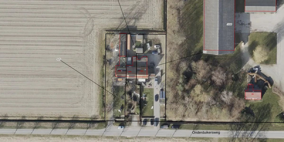 Onderduikersweg 46-A is gelegen op kadastraal perceel NOP00E773. Deze kadastrale aanduiding is uniek en wordt gebruikt door het Kadaster om eigendomsrechten en andere zakelijke rechten vast te leggen. Het perceel maakt onderdeel uit van de kadastrale gemeente Noordoostpolder.