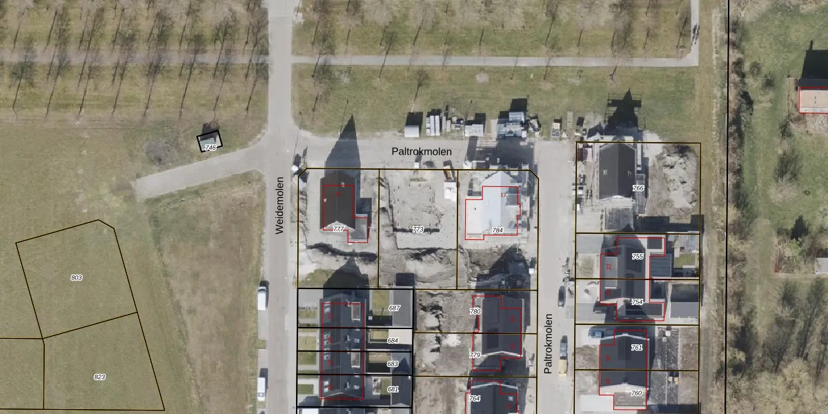 Het perceel waarop Paltrokmolen 19 staat heeft een oppervlakte van 550 m². Dit is een groot perceel. De perceeloppervlakte wordt geregistreerd door het Kadaster. Gedetailleerde informatie over de maten van dit perceel kunt u vinden in het rapport Kadastrale kaart met maatvoering van Paltrokmolen 19.