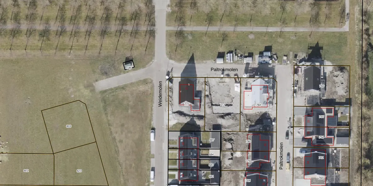 Het perceel waarop Paltrokmolen 21 staat heeft een oppervlakte van 562 m². Dit is een groot perceel. De perceeloppervlakte wordt geregistreerd door het Kadaster. Gedetailleerde informatie over de maten van dit perceel kunt u vinden in het rapport Kadastrale kaart met maatvoering van Paltrokmolen 21.
