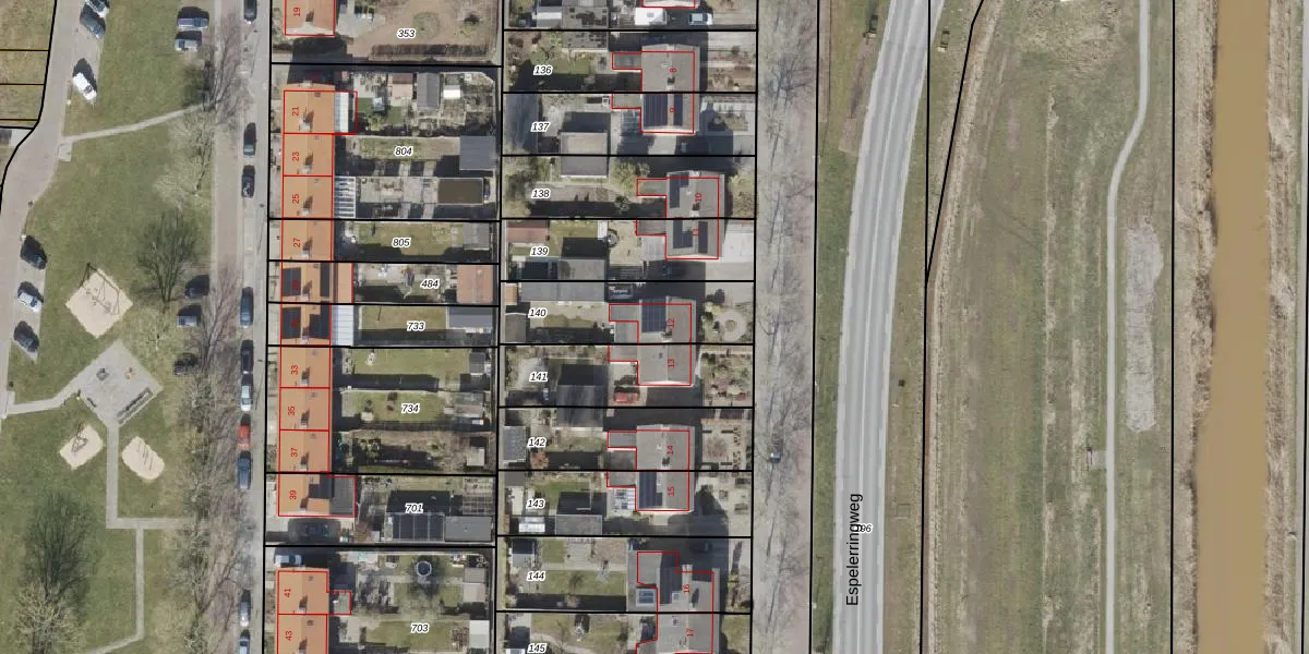 Het adres is gelegen op perceel 140 in de sectie EZ en de kadastrale gemeente Noordoostpolder. De kadastrale aanduiding is aldus NOP00-EZ-140. Het perceel is kleiner dan gemiddeld in Noordoostpolder. Het perceel is 376 m² groot, terwijl het gemiddelde ligt op 2,1 ha. Het kleinste perceel in de kadastrale gemeente is 0 m² groot. De grootste perceeloppervlakte is 47,42 km². Er zijn geen andere adressen aanwezig op het perceel. De laatste wijziging in het de Basisregistratie Kadaster (BRK) was op 30-10-2009.