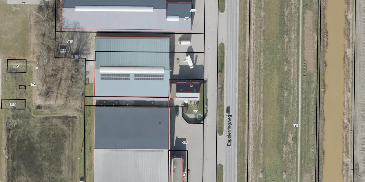 Het adres is gelegen op perceel 563 in de sectie EZ en de kadastrale gemeente Noordoostpolder. De kadastrale aanduiding is aldus NOP00-EZ-563. Het perceel is kleiner dan gemiddeld in Noordoostpolder. Het perceel is 605 m² groot, terwijl het gemiddelde ligt op 2,1 ha. Het kleinste perceel in de kadastrale gemeente is 0 m² groot. De grootste perceeloppervlakte is 47,42 km². Dit is het enige adres dat aanwezig is op het perceel. De laatste wijziging in het de Basisregistratie Kadaster (BRK) was op 13-08-2014.