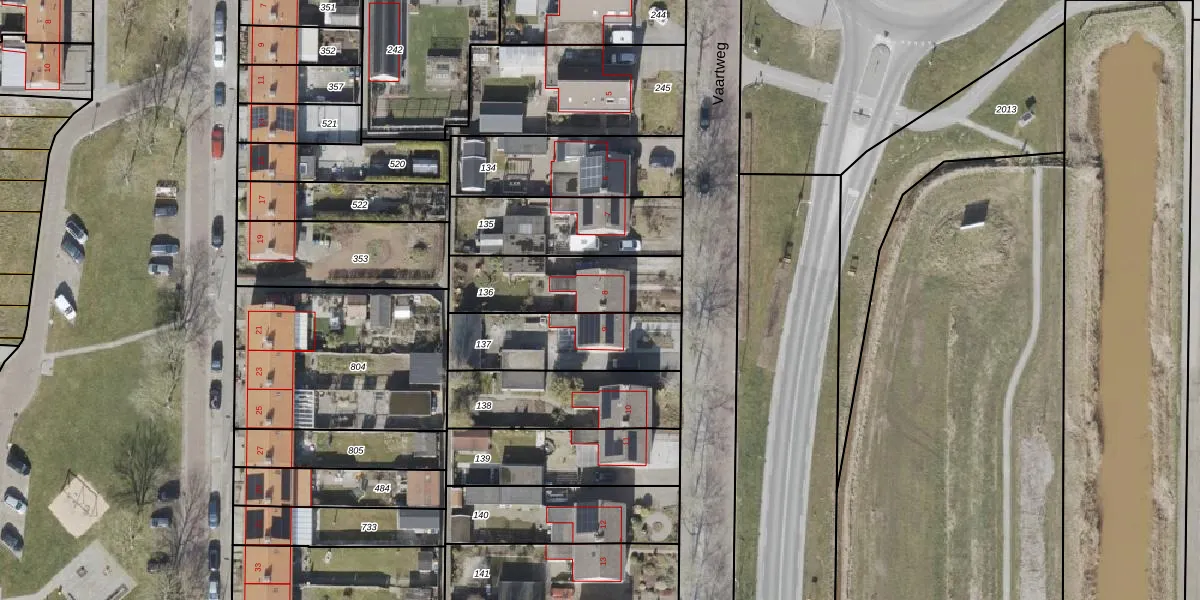 Het perceel waarop Vaartweg 8 staat heeft een oppervlakte van 377 m². Dit is een groot perceel. De perceeloppervlakte wordt geregistreerd door het Kadaster. Gedetailleerde informatie over de maten van dit perceel kunt u vinden in het rapport Kadastrale kaart met maatvoering van Vaartweg 8.