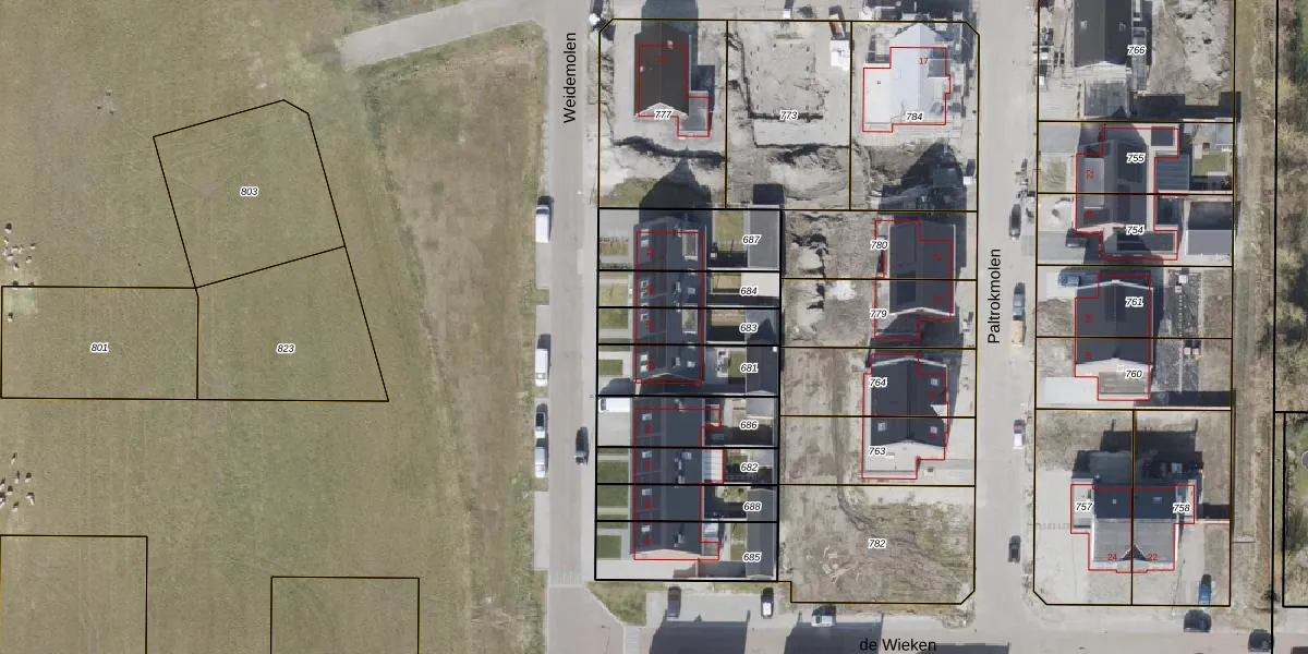 Het perceel waarop Weidemolen 18 staat heeft een oppervlakte van 157 m². Dit is een middelgroot perceel. De perceeloppervlakte wordt geregistreerd door het Kadaster. Gedetailleerde informatie over de maten van dit perceel kunt u vinden in het rapport Kadastrale kaart met maatvoering van Weidemolen 18.