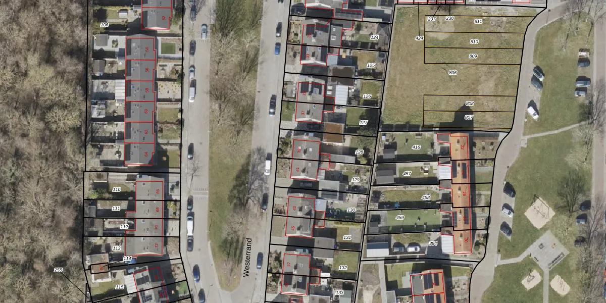 Het perceel waarop Westerrand 39 staat heeft een oppervlakte van 305 m². Dit is een groot perceel. De perceeloppervlakte wordt geregistreerd door het Kadaster. Gedetailleerde informatie over de maten van dit perceel kunt u vinden in het rapport Kadastrale kaart met maatvoering van Westerrand 39.