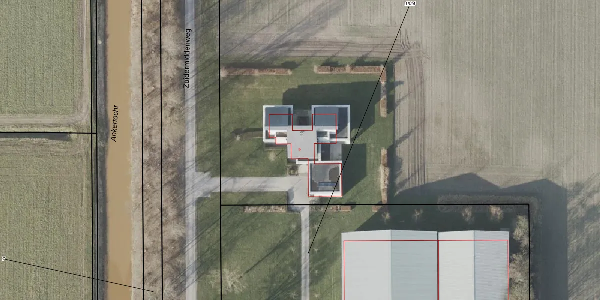 Zuidermiddenweg 9 is gelegen op kadastraal perceel NOP00E1923. Deze kadastrale aanduiding is uniek en wordt gebruikt door het Kadaster om eigendomsrechten en andere zakelijke rechten vast te leggen. Het perceel maakt onderdeel uit van de kadastrale gemeente Noordoostpolder.