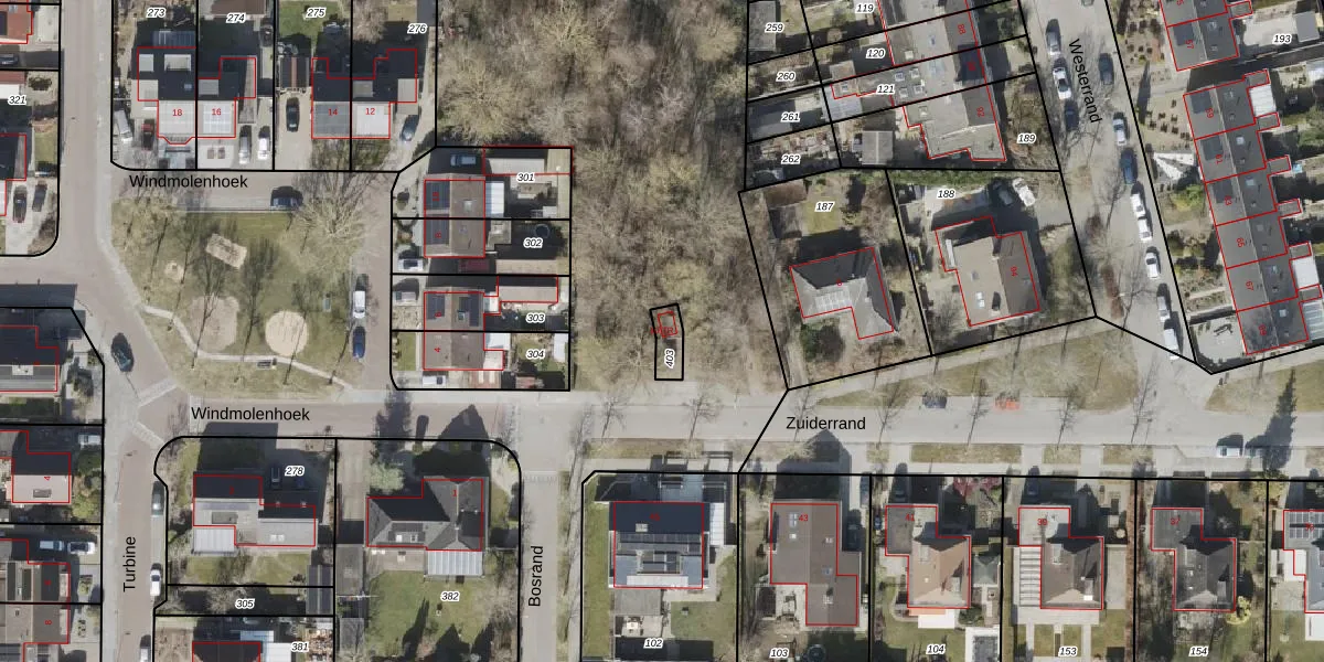 Gebruik de zoekbalk of klik op een perceel voor informatie over de adressen binnen dit perceel.