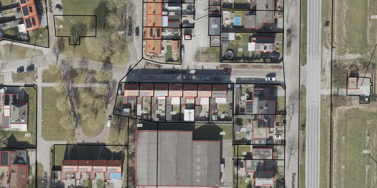 Gebruik de zoekbalk of klik op een perceel voor informatie over de adressen binnen dit perceel.