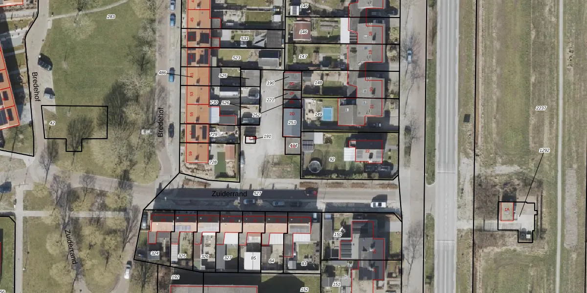 Het perceel waarop Zuiderrand 2-A staat heeft een oppervlakte van 32 m². Dit is een klein perceel. De perceeloppervlakte wordt geregistreerd door het Kadaster. Gedetailleerde informatie over de maten van dit perceel kunt u vinden in het rapport Kadastrale kaart met maatvoering van Zuiderrand 2-A.