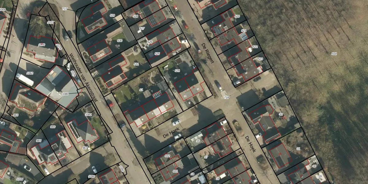 Het perceel waarop De Hoek 7 staat heeft een oppervlakte van 534 m². Dit is een groot perceel. De perceeloppervlakte wordt geregistreerd door het Kadaster. Gedetailleerde informatie over de maten van dit perceel kunt u vinden in het rapport Kadastrale kaart met maatvoering van De Hoek 7.