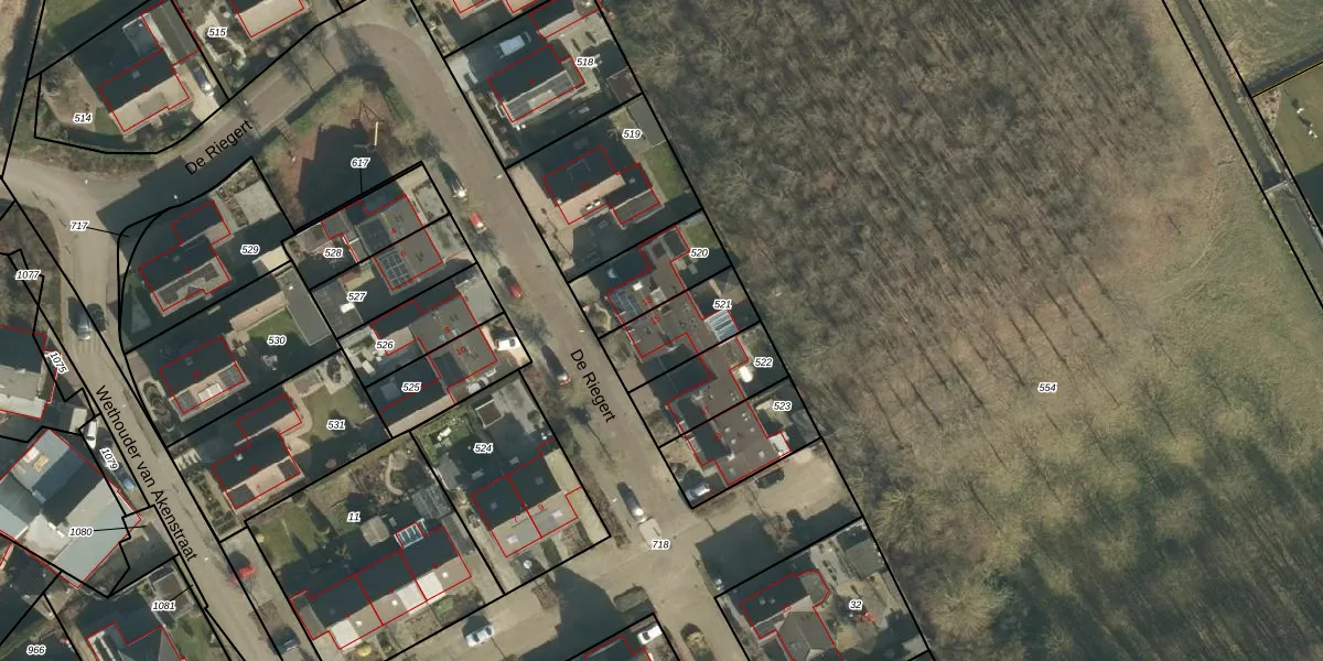 Het perceel waarop De Riegert 15 staat heeft een oppervlakte van 217 m². Dit is een middelgroot perceel. De perceeloppervlakte wordt geregistreerd door het Kadaster. Gedetailleerde informatie over de maten van dit perceel kunt u vinden in het rapport Kadastrale kaart met maatvoering van De Riegert 15.