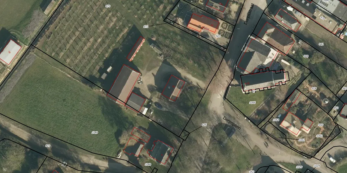 Het perceel waarop Dorpsstraat 13 staat heeft een oppervlakte van 9310 m². Dit is een zeer groot perceel. De perceeloppervlakte wordt geregistreerd door het Kadaster. Gedetailleerde informatie over de maten van dit perceel kunt u vinden in het rapport Kadastrale kaart met maatvoering van Dorpsstraat 13.