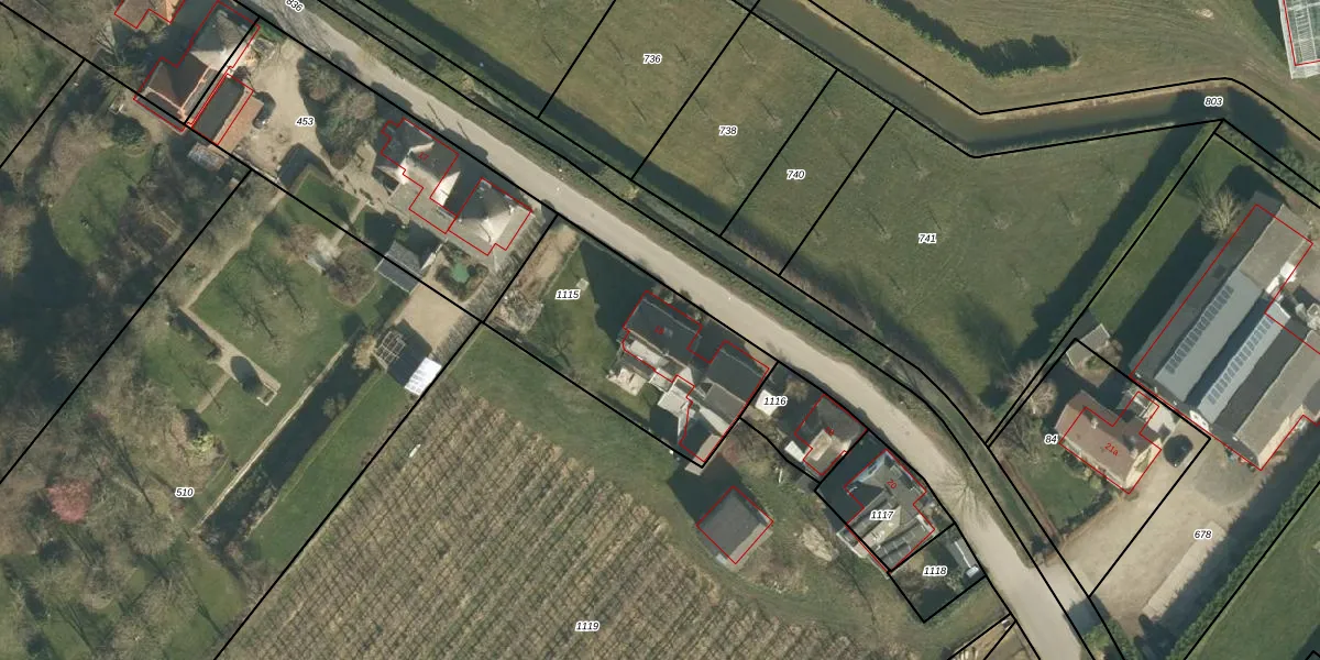 Het adres ligt op het perceel EST00-E-1115, dat zich in de kadastrale gemeente Est en Opijnen bevindt. Het perceel is 800 m² groot. Dat is kleiner dan de gemiddelde perceeloppervlakte in Est en Opijnen, dat op 5356,66 m² ligt. Het grootste perceel in de kadastrale gemeente is 29,6 ha. Het kleinste perceel heeft een oppervlakte van 0 m². Op het perceel bevinden zich geen andere adressen. In de Basisregistratie Kadaster (BRK) werden de grenzen van het perceel geregistreerd op 09-01-2024.