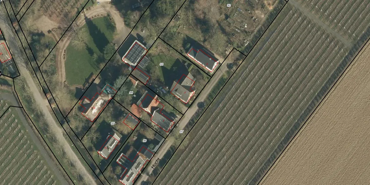 Het perceel waarop Hucht 2 staat heeft een oppervlakte van 910 m². Dit is een groot perceel. De perceeloppervlakte wordt geregistreerd door het Kadaster. Gedetailleerde informatie over de maten van dit perceel kunt u vinden in het rapport Kadastrale kaart met maatvoering van Hucht 2.