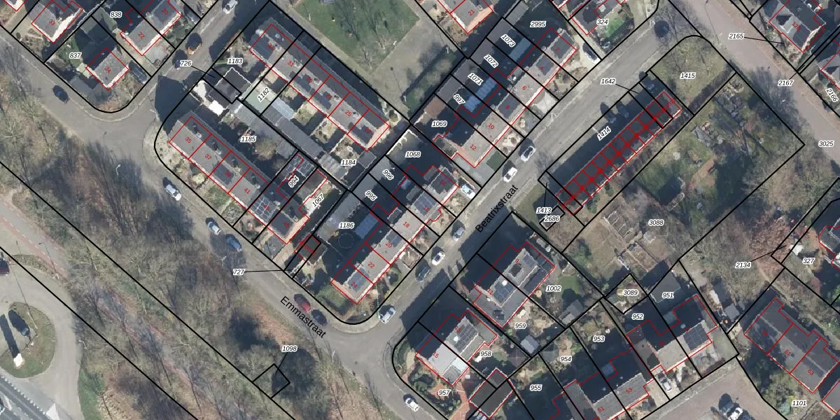 Het perceel waarop Beatrixstraat 16 staat heeft een oppervlakte van 141 m². Dit is een middelgroot perceel. De perceeloppervlakte wordt geregistreerd door het Kadaster. Gedetailleerde informatie over de maten van dit perceel kunt u vinden in het rapport Kadastrale kaart met maatvoering van Beatrixstraat 16.