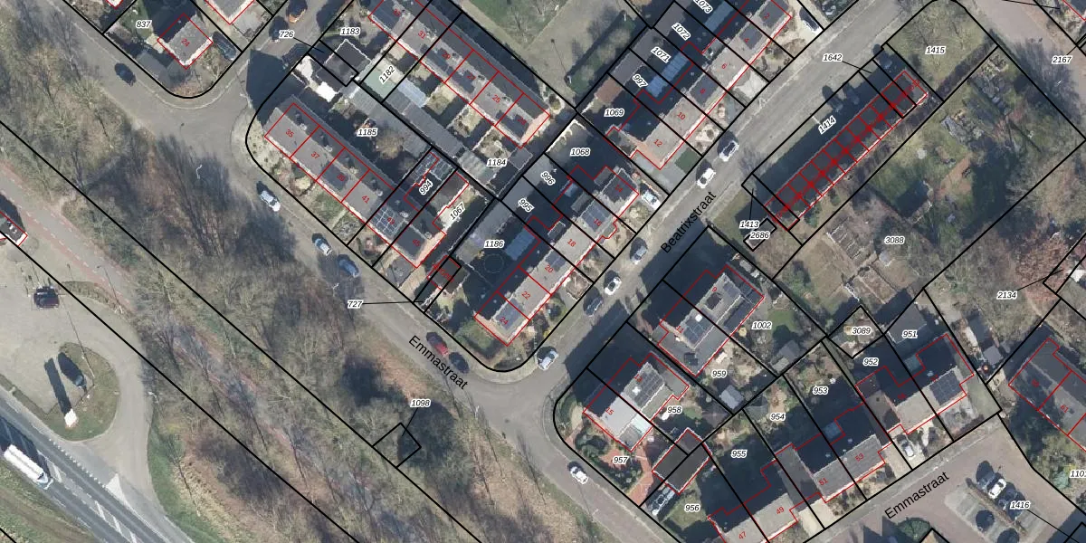 Het perceel waarop Beatrixstraat 20 staat heeft een oppervlakte van 516 m². Dit is een groot perceel. De perceeloppervlakte wordt geregistreerd door het Kadaster. Gedetailleerde informatie over de maten van dit perceel kunt u vinden in het rapport Kadastrale kaart met maatvoering van Beatrixstraat 20.