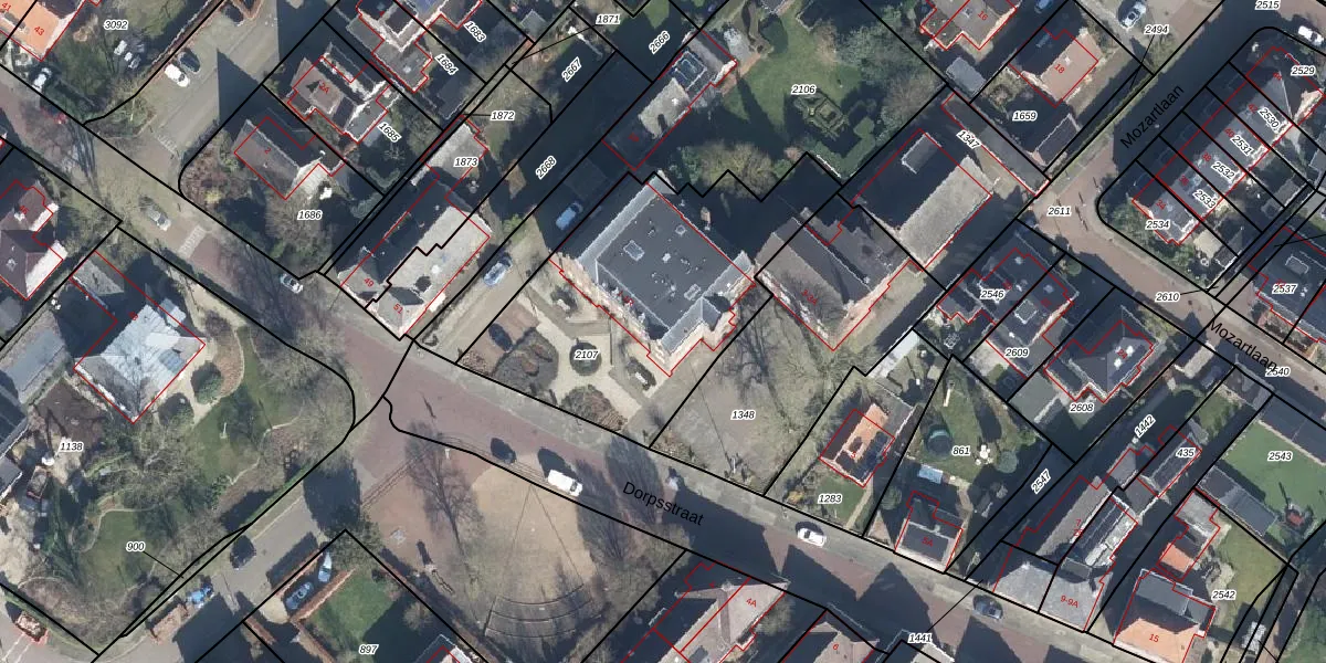 Het perceel waarop Dorpsstraat 1-F staat heeft een oppervlakte van 1215 m². Dit is een zeer groot perceel. De perceeloppervlakte wordt geregistreerd door het Kadaster. Gedetailleerde informatie over de maten van dit perceel kunt u vinden in het rapport Kadastrale kaart met maatvoering van Dorpsstraat 1-F.
