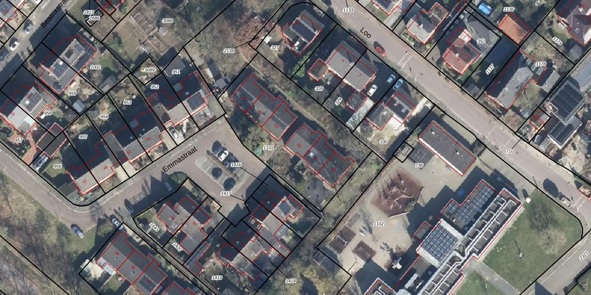 Het perceel waarop Emmastraat 65 staat heeft een oppervlakte van 1305 m². Dit is een zeer groot perceel. De perceeloppervlakte wordt geregistreerd door het Kadaster. Gedetailleerde informatie over de maten van dit perceel kunt u vinden in het rapport Kadastrale kaart met maatvoering van Emmastraat 65.