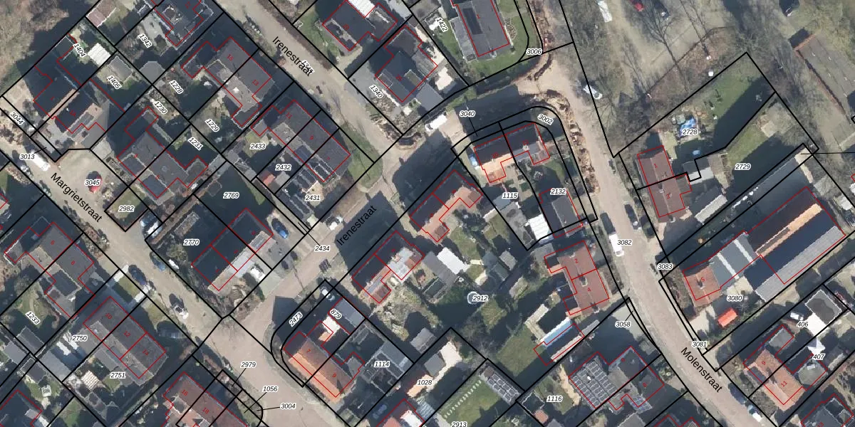 Het perceel waarop Irenestraat 6 staat heeft een oppervlakte van 1929 m². Dit is een zeer groot perceel. De perceeloppervlakte wordt geregistreerd door het Kadaster. Gedetailleerde informatie over de maten van dit perceel kunt u vinden in het rapport Kadastrale kaart met maatvoering van Irenestraat 6.