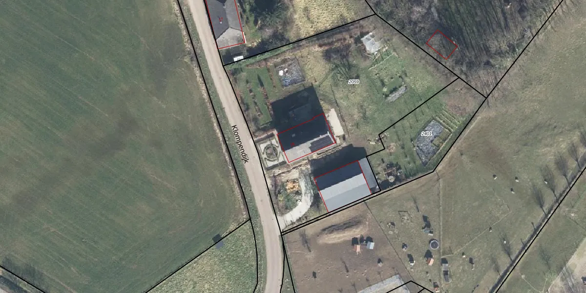 Het perceel waarop Klompendijk 19 staat heeft een oppervlakte van 3190 m². Dit is een zeer groot perceel. De perceeloppervlakte wordt geregistreerd door het Kadaster. Gedetailleerde informatie over de maten van dit perceel kunt u vinden in het rapport Kadastrale kaart met maatvoering van Klompendijk 19.