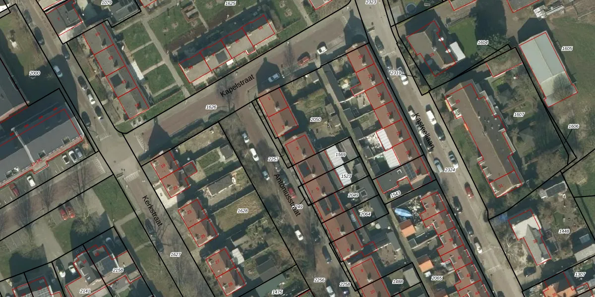 Antoniusstraat 3 is gelegen op kadastraal perceel ETN01D2050. Deze kadastrale aanduiding is uniek en wordt gebruikt door het Kadaster om eigendomsrechten en andere zakelijke rechten vast te leggen. Het perceel maakt onderdeel uit van de kadastrale gemeente Etten-Leur.