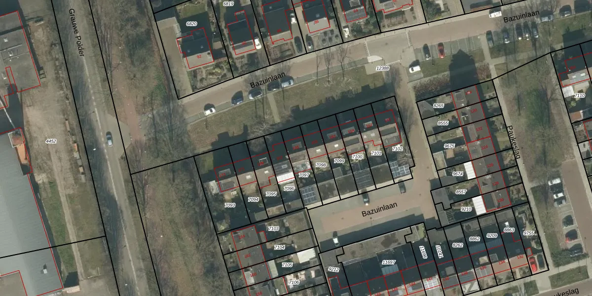 Het perceel waarop Bazuinlaan 165 staat heeft een oppervlakte van 177 m². Dit is een middelgroot perceel. De perceeloppervlakte wordt geregistreerd door het Kadaster. Gedetailleerde informatie over de maten van dit perceel kunt u vinden in het rapport Kadastrale kaart met maatvoering van Bazuinlaan 165.