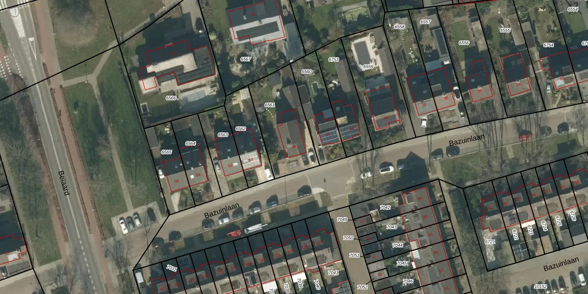 Het perceel waarop Bazuinlaan 48 staat heeft een oppervlakte van 550 m². Dit is een groot perceel. De perceeloppervlakte wordt geregistreerd door het Kadaster. Gedetailleerde informatie over de maten van dit perceel kunt u vinden in het rapport Kadastrale kaart met maatvoering van Bazuinlaan 48.